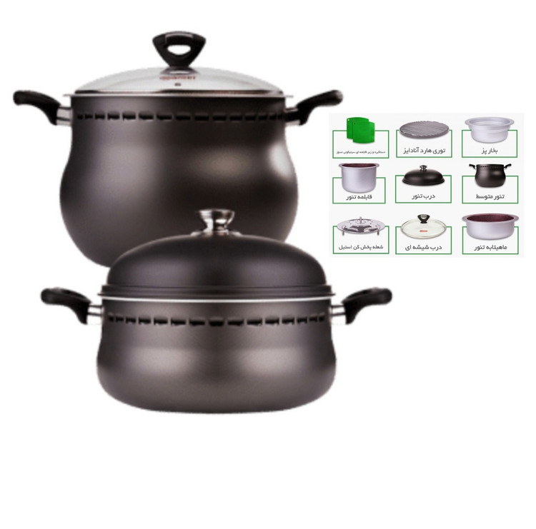 با خرید سرویس غذاپز همه کاره ناخ، دیگر نیازی به ظروف آشپزخانه نخواهید داشت. سرویس غذاپز همه کاره ناخ مدل 8 پارچه 8 نفره برای پخت انواع غذا برای خانوادههای پرجمعیت یا مجالس و دورهمیهای دوستانه مناسب است. قرارگیری دو تنور با سایز متوسط و کوچک در سرویس غذاپز موجب شده تا امکان تهیه انواع غذا را بهصورت همزمان داشته باشید. همچنین در این سرویس دو درب شیشهای قرار داده شده است تا به راحتی بتوانید همهی غذاهای مورد نظر خود را طبخ کنید.